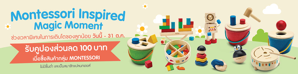 ใช้โค้ด Montess100 รับส่วนลด 100 บาท สำหรับซื้อสินค้ากลุ่ม Montessori เมื่อ Subscribe Email หรือ สมัครสมาชิกPlanToys