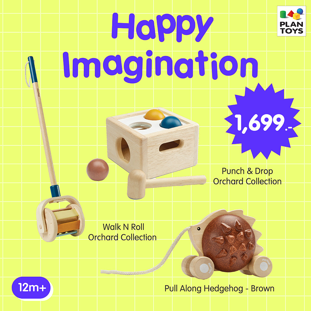 Happy Imagination 1,699.- Punch & Drop – Orchard + Pull Along Hedgehog – Brown + Walk N Roll – Orchard
